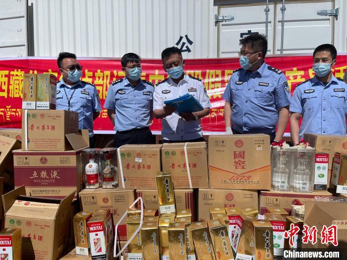 23日,西藏自治區(qū)公安廳經(jīng)偵總隊(duì)銷毀案值100余萬元(人民幣,下同)高檔名貴假酒。
