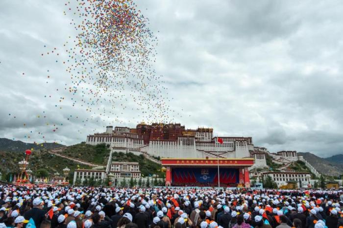 2021 年8 月19 日,慶祝西藏和平解放70 周年大會在拉薩布達拉宮廣場舉行。 本報記者 江飛波 攝