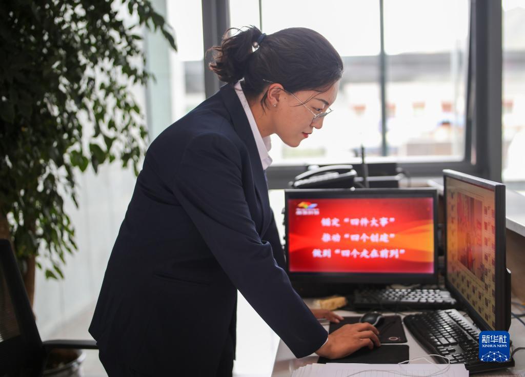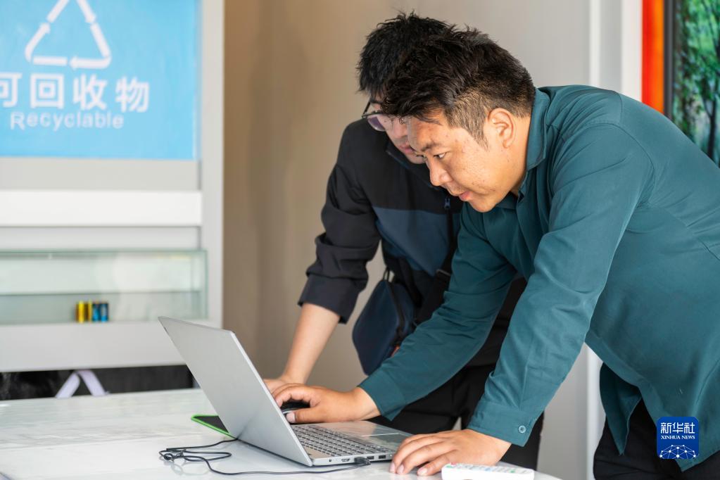 “格桑花開”大學生就業(yè)創(chuàng)業(yè)特訓營學員、西藏藏建科技股份有限公司職員旦珍在工作中(2022年6月24日攝)。新華社記者 姜帆 攝