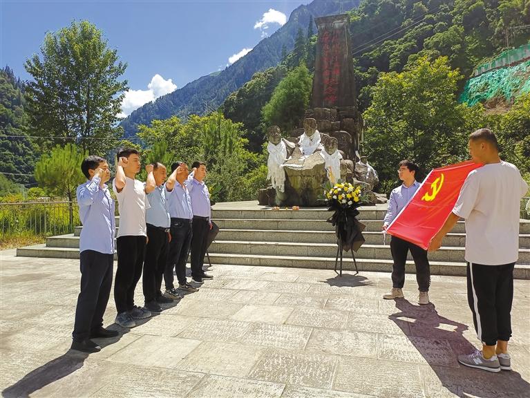 7月1日,中交二公局西藏項(xiàng)目黨支部組織黨員、預(yù)備黨員、入黨積極分子,前往波密紅樓、“川藏線上十英雄”紀(jì)念碑等地開展慶祝建黨101周年主題黨日活動(dòng),引導(dǎo)黨員干部自覺錘煉黨性,增強(qiáng)服務(wù)意識(shí)、感悟初心、傳承使命。 圖為該支部黨員在“川藏線上十英雄”紀(jì)念碑前重溫入黨誓詞。林芝采訪組 攝