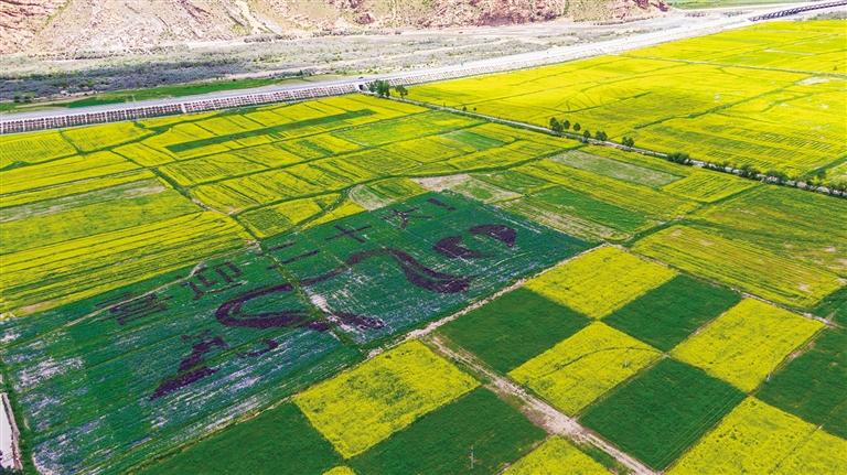 墨竹工卡縣農(nóng)業(yè)農(nóng)村局相關負責人告訴記者,這次的創(chuàng)意油菜花田和往年相比大不相同,為了迎接黨的二十大勝利召開,他們?nèi)α?00畝地人工種植了專門引進的四種彩色油菜花歷時兩個多月它們開花啦!看出這是什么圖案了嗎?現(xiàn)在記者給你揭曉(最上面是喜迎二十大字,字下中間是哈達、左邊是代表松贊干布和文成公主,右邊是愛心)。怎么樣,大家看出來了嗎?現(xiàn)在扎西崗村的創(chuàng)意油菜花都開了,從現(xiàn)在開始到接下來的半個月都是賞花期,一起去打卡墨竹工卡縣鄉(xiāng)村觀賞小油菜花的勝地吧,喜歡攝影的朋友更不能錯過哦!
