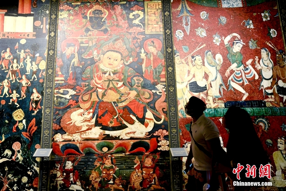 7月8日,歷時五年建設,西藏博物館新館正式對外開放。西藏博物館緊鄰世界文化遺產(chǎn)布達拉宮和羅布林卡,2017年10月,其改擴建項目正式啟動。新館在老館基礎上進行擴建,建筑外觀沿襲傳統(tǒng)藏式建筑。據(jù)了解,西藏博物館館藏文物52萬件。其中,珍貴文物達4萬余件(套),類別包括考古出土文物、印章封誥、唐卡、古籍、造像、法器、瓷器、玉器、絲織品、雜項等十八類,具有極高的歷史、藝術和科學價值。此次開館,共有2700余件(套)文物展出,其中有600余件(套)文物首次展出。圖為游客在館內(nèi)參觀。 中新社發(fā) 李林 攝