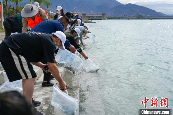 圖為7月12日,拉薩河畔放流活動(dòng)現(xiàn)場(chǎng)?!〗w波 攝
