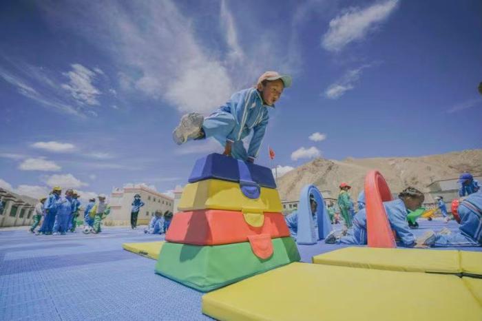 “新操場是我們的游樂園”,六歲的旦增次央第一次見到操場時開心極了,“操場上可以跑可以跳,還有好多新玩具,太好玩了!”