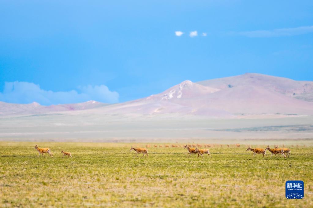 在雙湖縣境內(nèi)拍攝的藏羚羊(7月11日攝)。新華社記者 周荻瀟 攝