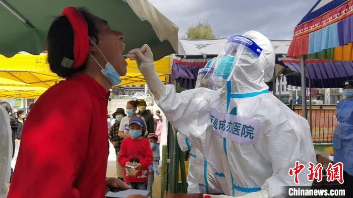 圖為西藏自治區(qū)人民政府駐成都辦事處醫(yī)院醫(yī)療隊(duì)在拉薩檢測(cè)點(diǎn)為民眾進(jìn)行核酸檢測(cè) 西藏自治區(qū)人民政府駐成都辦事處醫(yī)院醫(yī)療隊(duì) 供圖