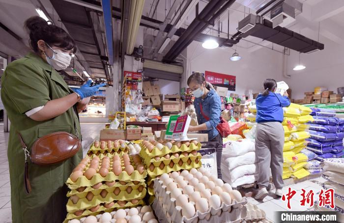 圖為拉薩市民在農(nóng)貿(mào)市場內(nèi)選購生活物資。李林 攝