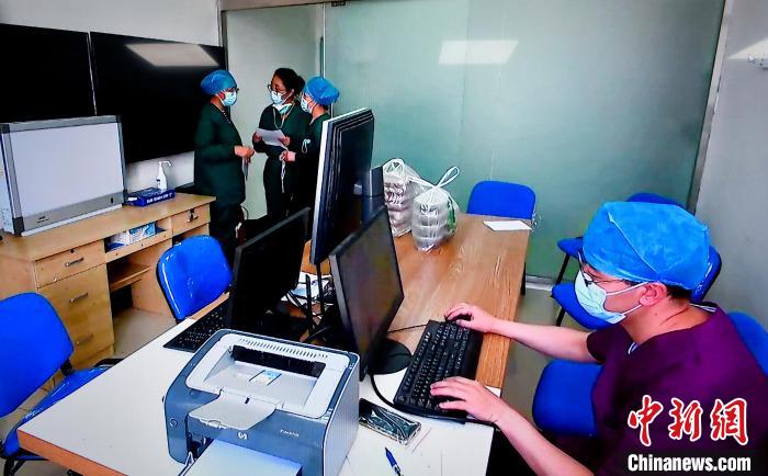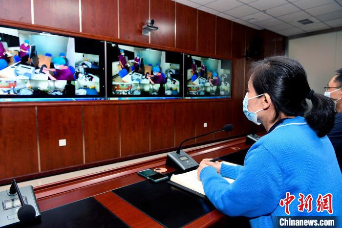 圖為西藏自治區(qū)第三人民醫(yī)院醫(yī)生在遠程中心開展查房工作?!±盍?攝