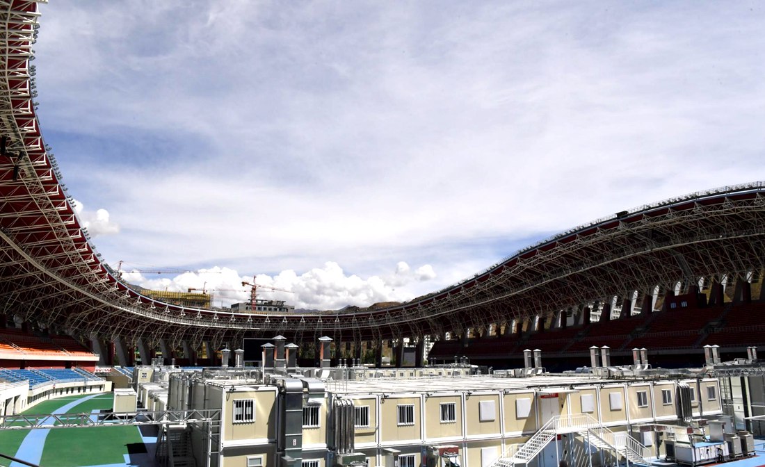 8月14日上午,記者探訪了位于柳梧新區(qū)拉薩市群眾體育文化中心的拉薩市方艙醫(yī)院。