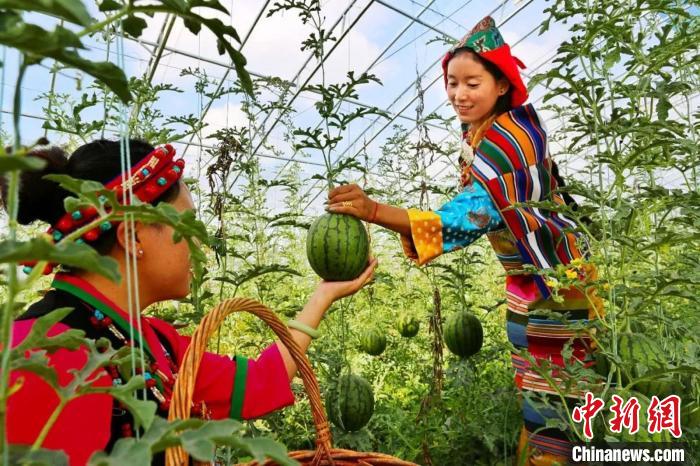(資料圖)種植戶在采摘西瓜。山東援藏干部供圖