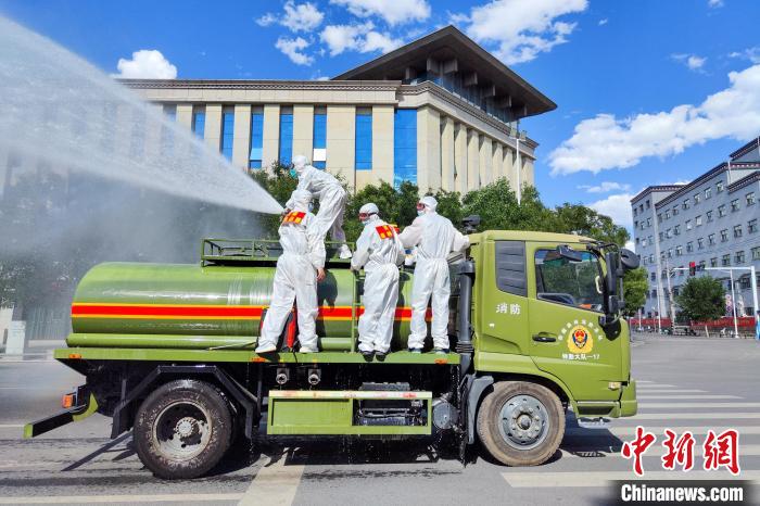西藏森林消防特勤大隊利用水罐車對重要區(qū)域進(jìn)行消殺。西藏森林消防總隊 供圖