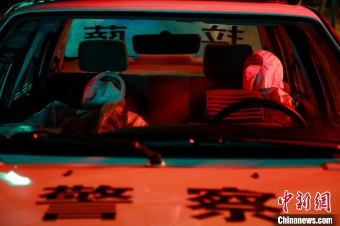 每晚他們要檢查一百多輛往來(lái)的車,沒(méi)有車的時(shí)候他們就在路口反復(fù)踱步,偶爾打開(kāi)面罩呼吸下略帶清涼的空氣,讓自己清醒一些。