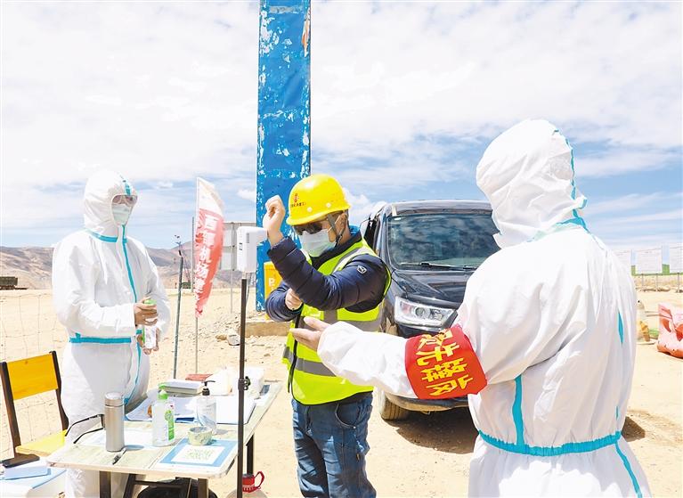 在西藏阿里普蘭機(jī)場(chǎng)項(xiàng)目施工現(xiàn)場(chǎng),施工人員經(jīng)過(guò)體溫檢測(cè)、身份登記、消毒等程序后,才能進(jìn)入工地。施工現(xiàn)場(chǎng)機(jī)器轟鳴,管理人員分兵把口,施工人員各司其職,整個(gè)工地處處都是忙碌的身影。