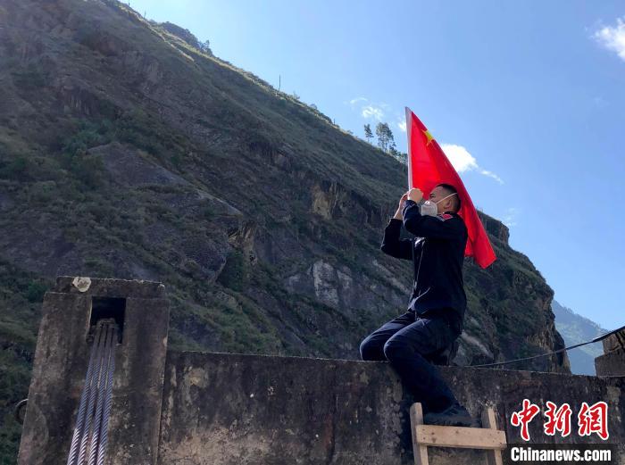 巡邏間隙,移民管理警察攻國(guó)杰在口岸遺址上方更換國(guó)旗?!」陆y(tǒng) 攝
