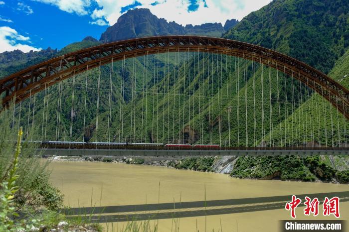 圖為一列火車經(jīng)過西藏雅魯藏布江藏木大橋?!〗w波 攝