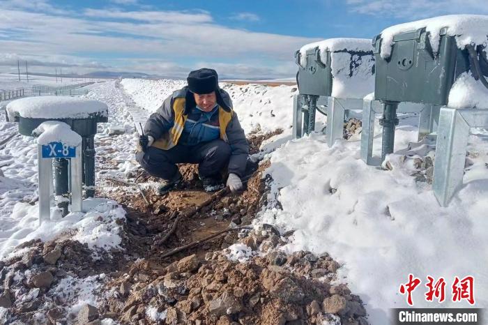 在唐古拉山地區(qū),空氣中的含氧量不足平原地區(qū)的50%,一個(gè)看似簡(jiǎn)單而又行云流水的檢查作業(yè),一套下來(lái),工作人員們氣喘吁吁。“今天唐古拉的天氣還不錯(cuò),風(fēng)也不大?!泵遍苌?、眉毛上結(jié)滿了霜花的梁海峰一邊檢查一邊說(shuō)。