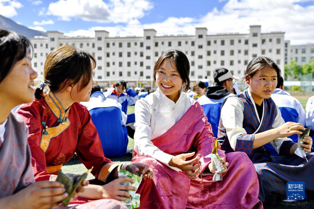 西藏山南市第二高級中學(xué)的學(xué)生在學(xué)校過端午節(jié)(2022年6月3日攝)。新華社記者 張汝鋒 攝
