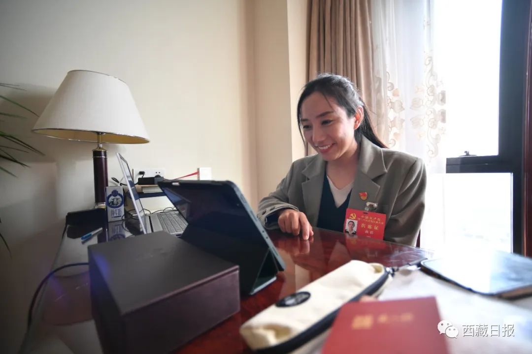 這是曲措代表在和同事進(jìn)行視頻通話,了解工廠生產(chǎn)情況。記者 旦增西旦 攝