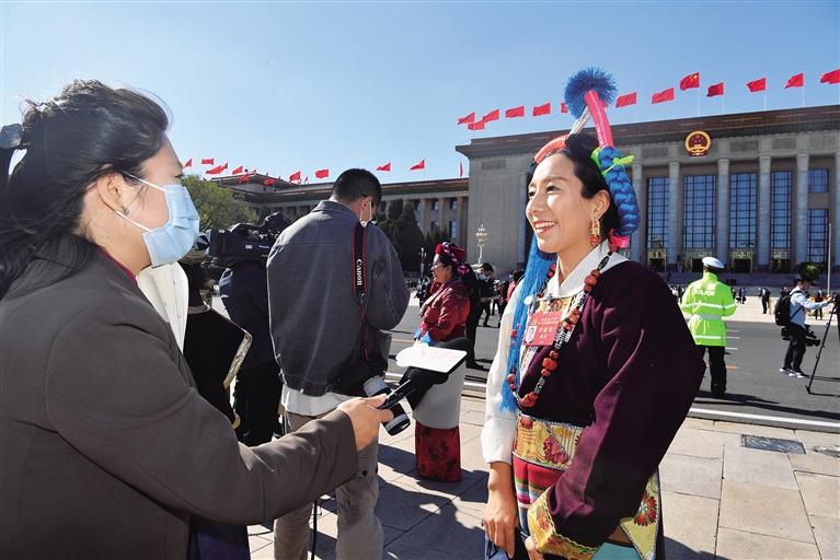 走出人民大會(huì)堂的西藏代表團(tuán)代表,意氣風(fēng)發(fā)、豪情滿懷,他們暢談參會(huì)收獲,紛紛表達(dá)堅(jiān)持以習(xí)近平新時(shí)代中國(guó)特色社會(huì)主義思想為指引,認(rèn)真貫徹落實(shí)黨的二十大精神,開啟新征程、續(xù)寫新篇章的信心決心。