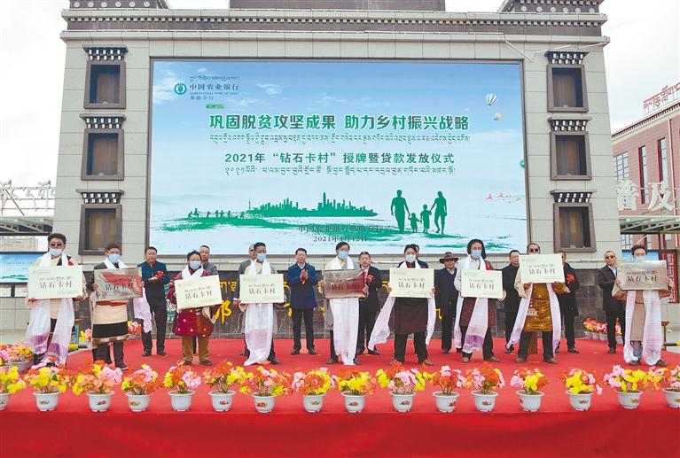 農(nóng)行那曲分行聯(lián)合色尼區(qū)委舉辦“鞏固拓展脫貧攻堅成果、助力鄉(xiāng)村振興戰(zhàn)略”鉆石卡村授牌暨貸款發(fā)放儀式。 (圖文均由農(nóng)行那曲分行提供)