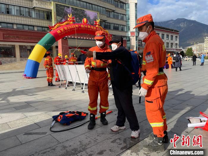 消防隊(duì)員正在教授裝備使用方法?!≡辣?攝