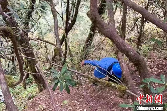 圖為西藏林芝波密縣10千伏“蓋塔線”巡線員工穿越原始森林?!W(wǎng)波密縣供電服務中心 供圖