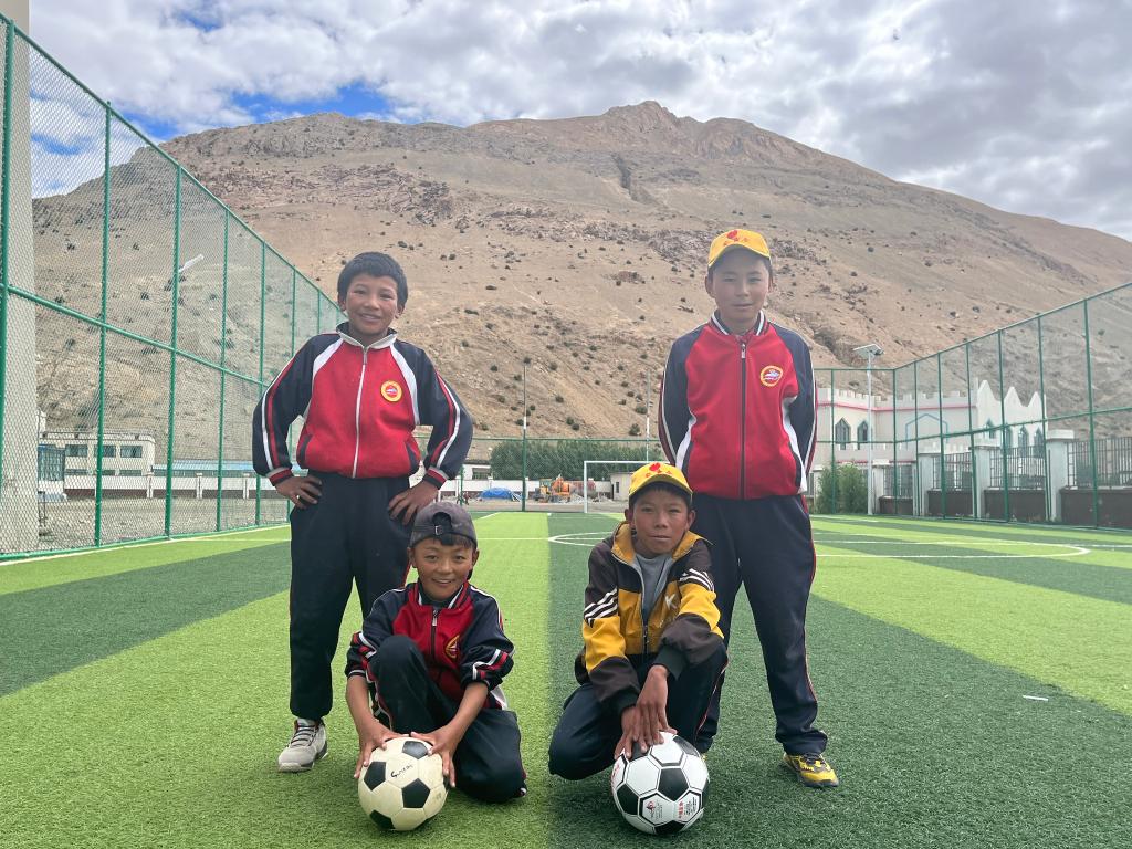 今年6月畢業(yè)前夕,格旦曲桑(前左)和同學在扎西宗鄉(xiāng)完全小學的足球場上合影留念