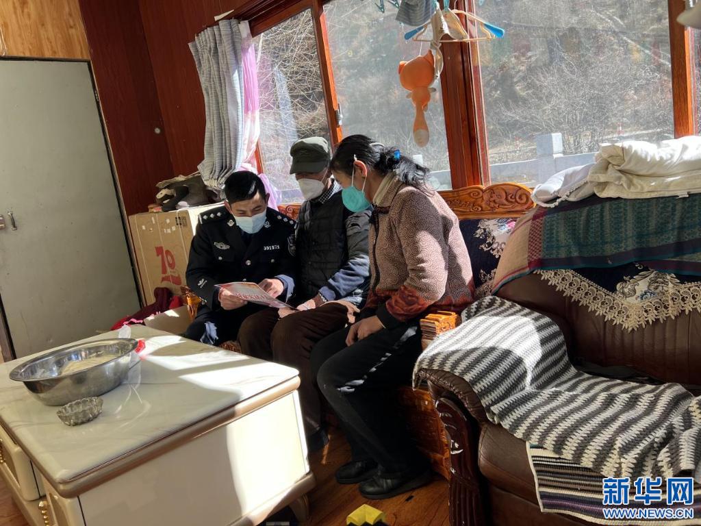 民警走進駐地百姓家進行普法宣講。( 王艮攝)