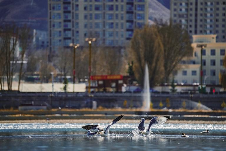 候鳥大約是拉薩入冬的標(biāo)志。初冬時(shí)節(jié),拉魯濕地和拉薩河邊,到處都是從遠(yuǎn)方飛來(lái)越冬的黃鴨、斑頭雁。隨著拉薩生態(tài)環(huán)境更加優(yōu)美,這些可愛的精靈選擇在此越冬,讓許多觀鳥愛好者心動(dòng)。每天清晨天還未亮,他們就早早地守候在水邊,只為記錄下候鳥迎著第一縷朝陽(yáng)翩然飛舞的景象。