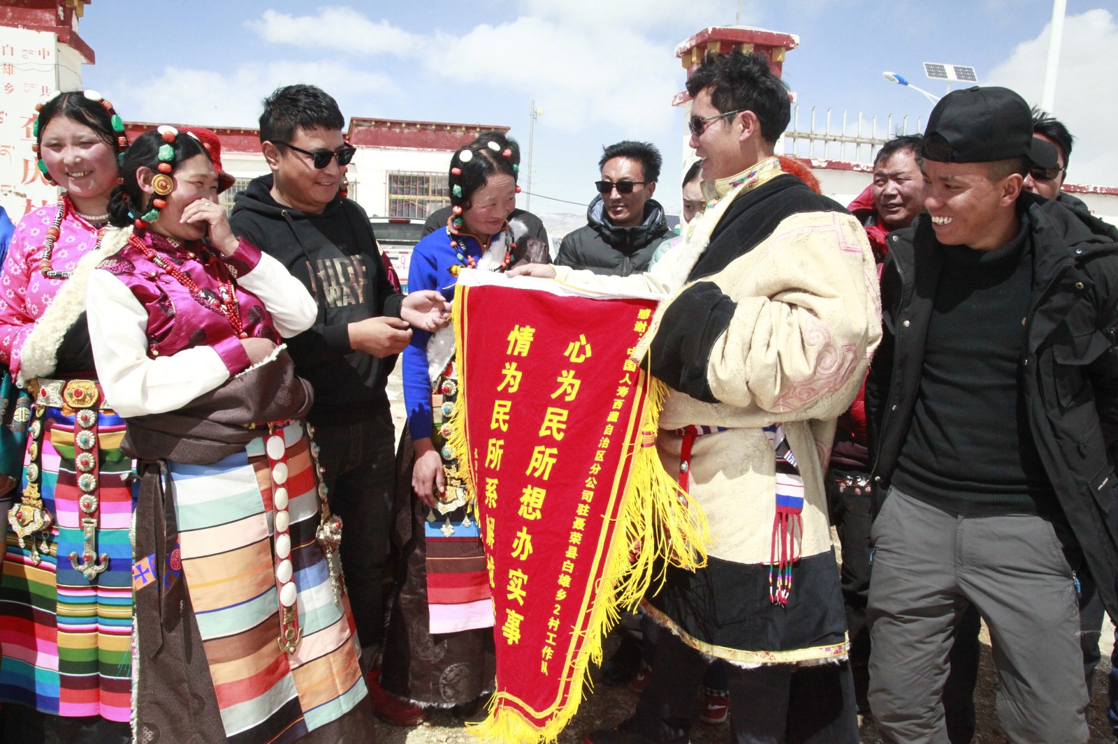 圖為中國(guó)人壽西藏分公司三個(gè)駐村點(diǎn)均如期實(shí)現(xiàn)整村脫貧,駐村工作隊(duì)持續(xù)開展工作鞏固脫貧成果,白雄鄉(xiāng)查慶村干部群眾為公司駐村工作隊(duì)送上錦旗表示感謝。