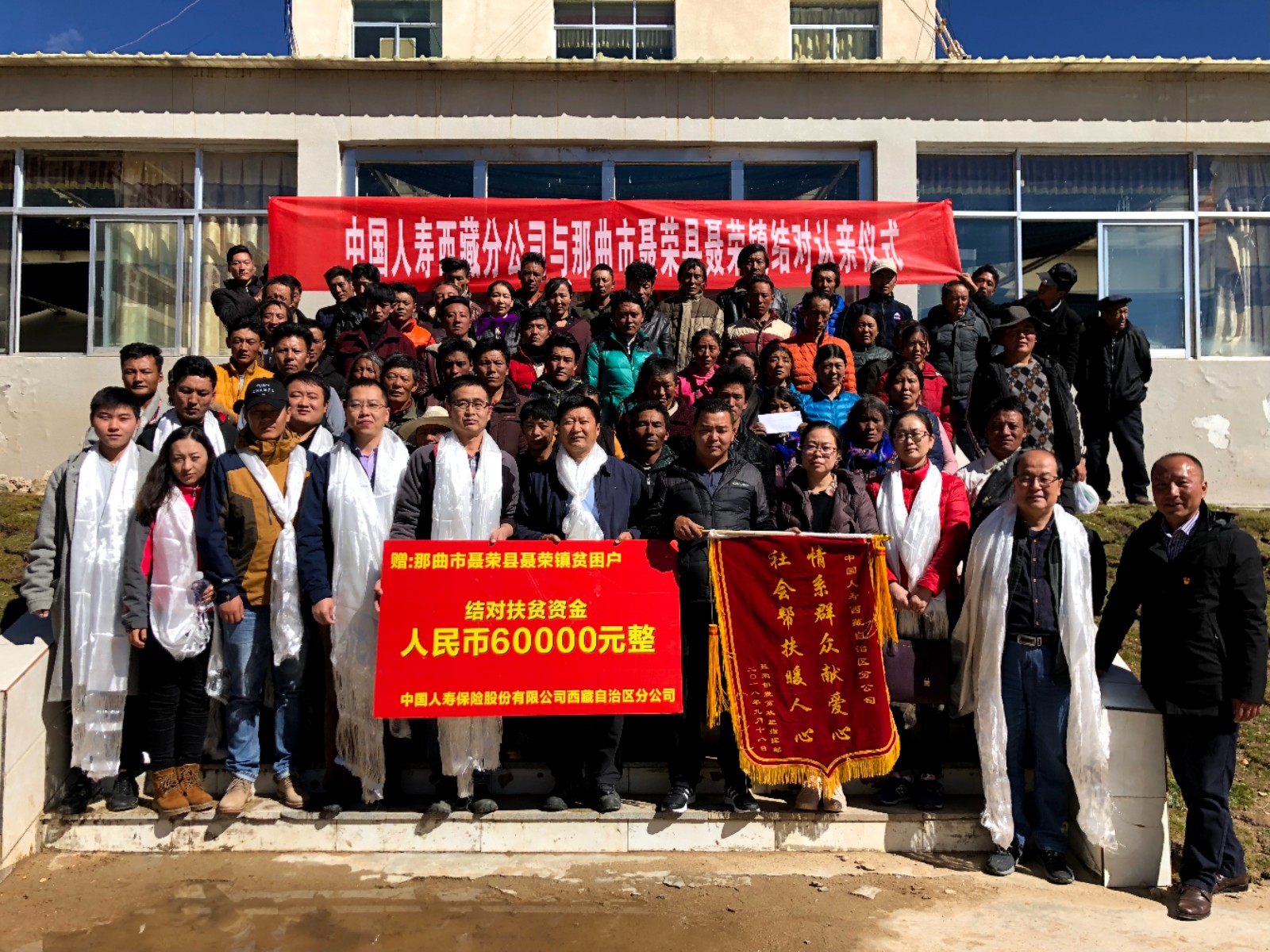 圖為中國(guó)人壽西藏分公司干部職工與那曲市聶榮縣聶榮鎮(zhèn)開展結(jié)對(duì)認(rèn)親幫扶活動(dòng)。