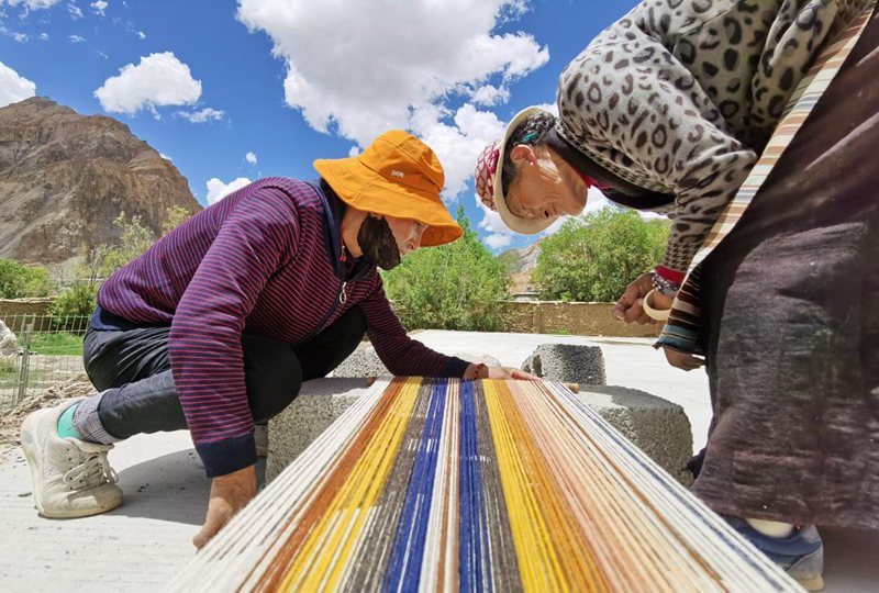 除了賣產(chǎn)品,次仁曲珍也心系十里八村的其他群眾?!拔覀兊脑牧希ㄑ蛎?、羊絨),都是從周邊村子收購的。其實,以前很多老百姓家的羊毛要么自用,要么送人,幾乎很少出售?,F(xiàn)在他們可以送到我這里,市場價7元—10元/斤。”古老的紡織技藝與珍稀羊毛(絨)材質(zhì)融合,是每一位阿佳用心編織的直抵人們內(nèi)心深處的柔軟,更是她們的五彩夢想。