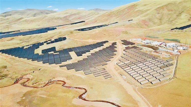 日前,昌都市保供重點(diǎn)項(xiàng)目江達(dá)索日光伏電站并網(wǎng)發(fā)電。該項(xiàng)目位于海拔4000米的昌都市江達(dá)縣青泥洞鄉(xiāng)索日村,年均發(fā)電量8800萬(wàn)千瓦時(shí),每年節(jié)約標(biāo)煤2.68萬(wàn)噸,可有效緩解當(dāng)?shù)囟居秒姼叻迤陔娏θ笨冢瑸槿罕娚a(chǎn)生活和昌都市經(jīng)濟(jì)社會(huì)發(fā)展提供安全清潔的電力保障。 圖為索日光伏電站一角(無(wú)人機(jī)照片)。通訊員 邱云 記者 李梅英 攝