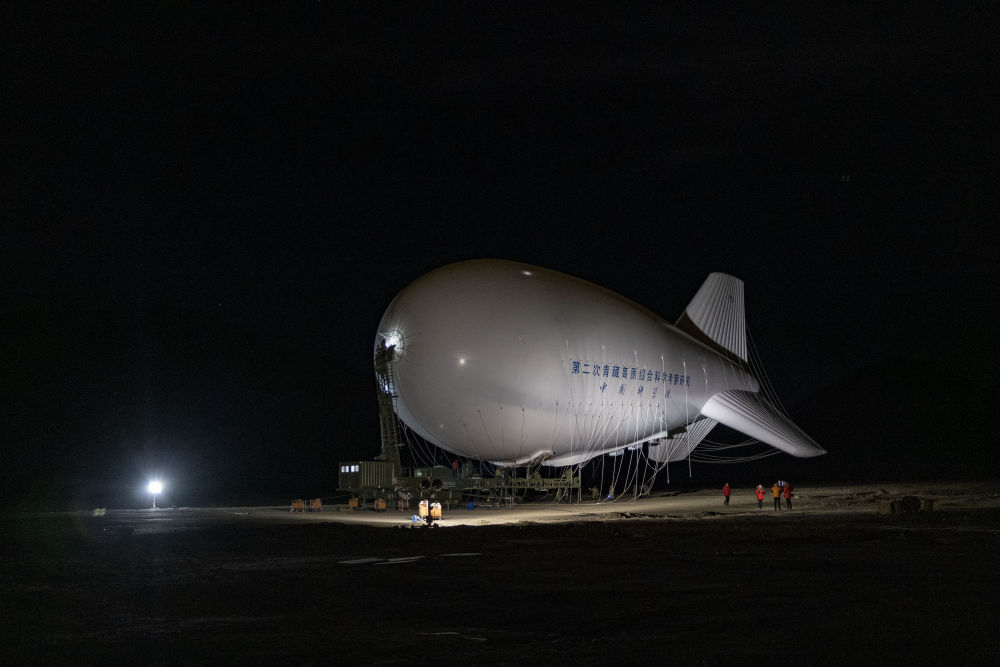 “極目一號(hào)”Ⅲ型浮空艇在發(fā)放場(chǎng)地準(zhǔn)備升空(2022年5月15日攝)。