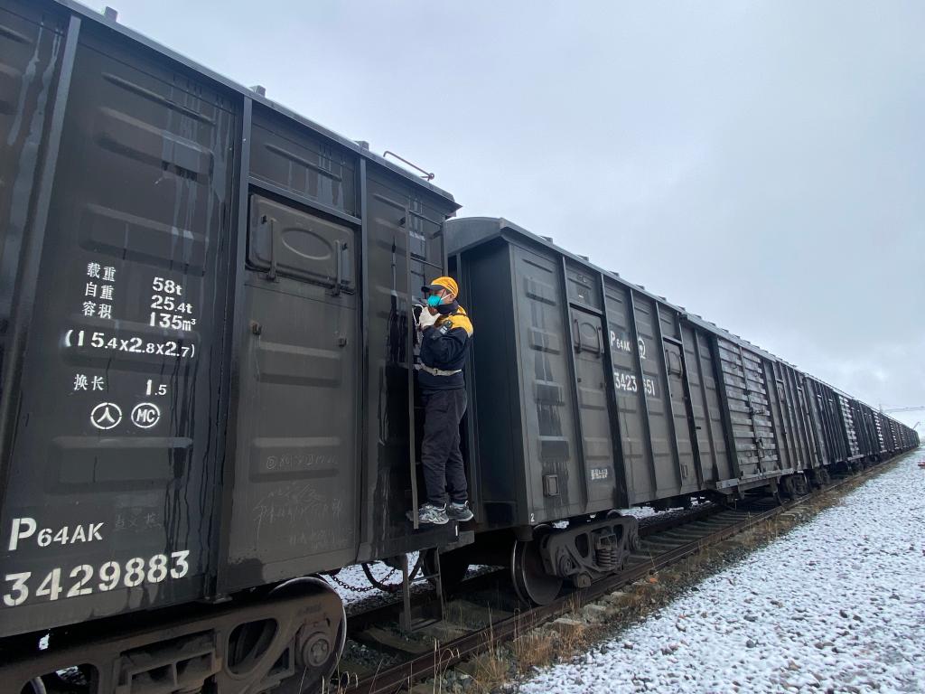 平均海拔超過4500米的西藏那曲市色尼區(qū)剛下完一場大雪,寒風(fēng)呼嘯。重復(fù)爬車下車,彎腰摘接風(fēng)管,大聲準(zhǔn)確喊出聯(lián)控用語,緊接著撤除車列的防溜措施,青藏鐵路那曲火車站調(diào)車長達(dá)瓦次仁忙完一組調(diào)車作業(yè)后,嘴唇發(fā)紫、臉頰通紅,需要馬上吸氧才能緩過勁。