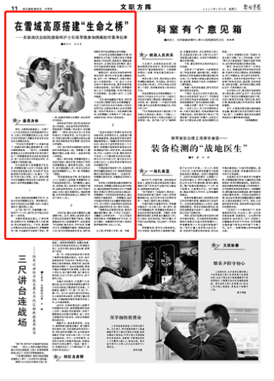 “促進(jìn)優(yōu)質(zhì)醫(yī)療資源擴(kuò)容和區(qū)域均衡布局,堅(jiān)持預(yù)防為主,加強(qiáng)重大慢性病健康管理,提高基層防病治病和健康管理能力。”援藏任務(wù)結(jié)束回到單位后,結(jié)合學(xué)習(xí)宣傳貫徹黨的二十大精神,鄭翠霞對(duì)高原病和高原戰(zhàn)創(chuàng)傷等課題進(jìn)行深入研究思考。她由衷感到,作為一名醫(yī)護(hù)工作者,要切實(shí)把學(xué)習(xí)黨的二十大精神煥發(fā)的政治熱情,轉(zhuǎn)化為干好本職工作、強(qiáng)化擔(dān)當(dāng)作為的強(qiáng)大動(dòng)力,以更加昂揚(yáng)的精神狀態(tài)忠誠(chéng)履職盡責(zé)。