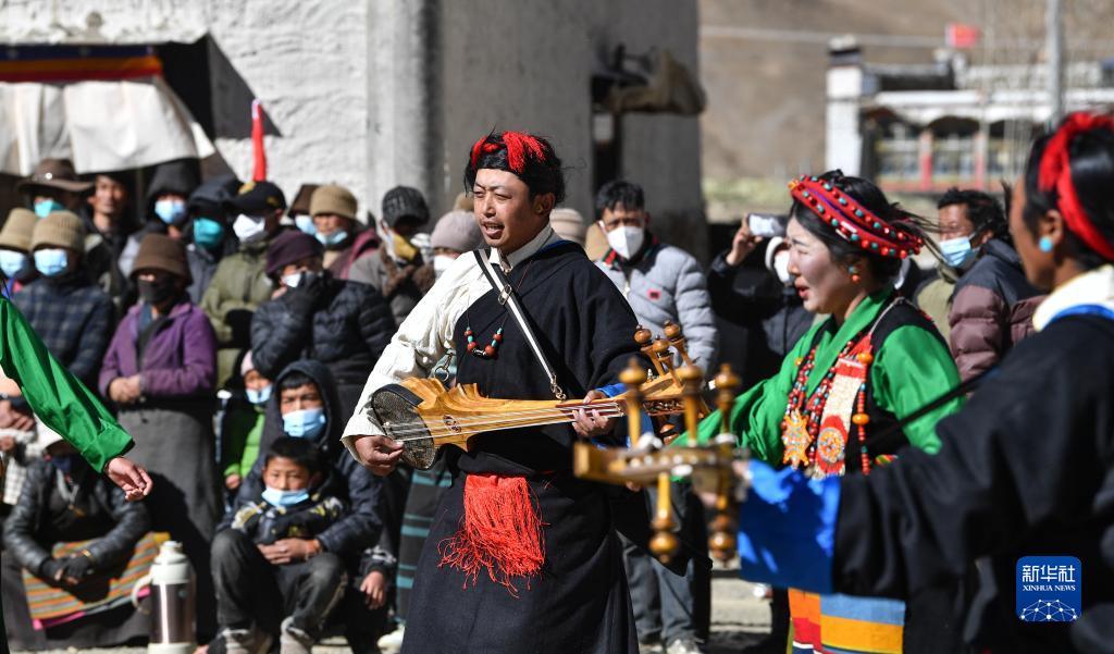 西藏日喀則市芒普鄉(xiāng)普村文藝演出隊(duì)的演員在表演(1月21日攝)。新華社記者 晉美多吉 攝