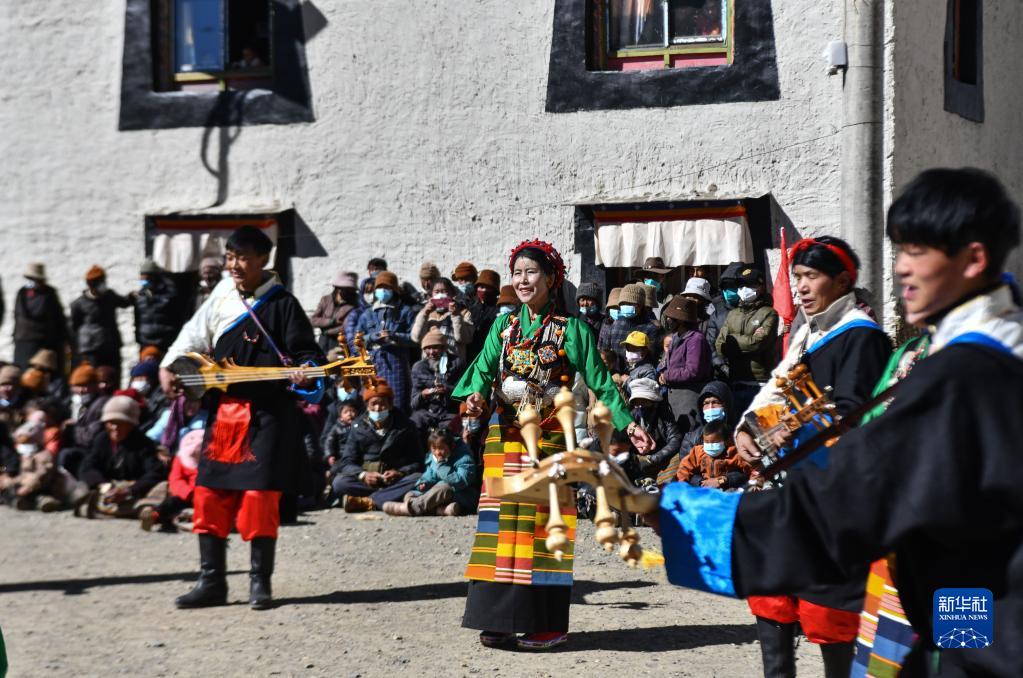 西藏日喀則市芒普鄉(xiāng)普村文藝演出隊(duì)在表演(1月21日攝)。新華社記者 晉美多吉 攝