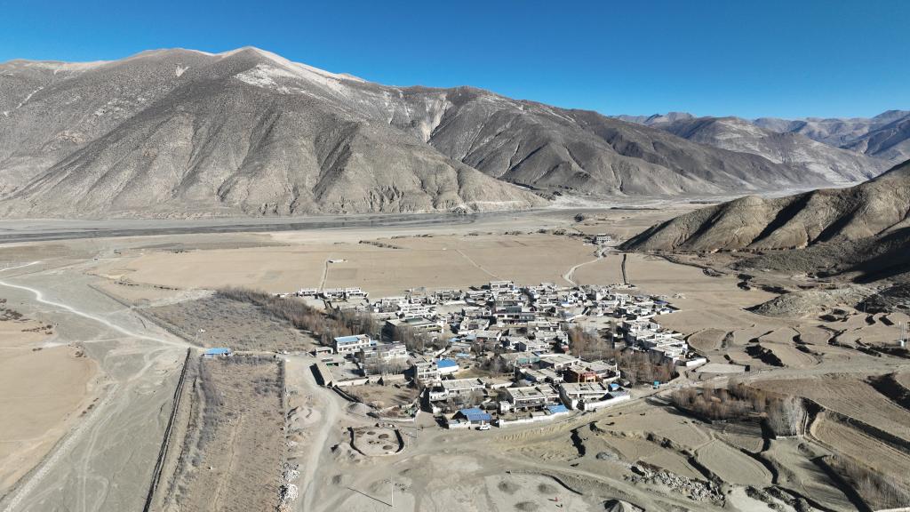 這是平拉家所在的西藏日喀則市拉孜縣扎西宗鄉(xiāng)雜村(1月22日攝,無人機照片)。新華社記者 晉美多吉 攝