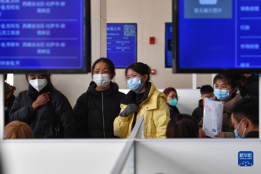 2月8日,求職者在西藏2023年“春風行動”暨就業(yè)援助月招聘活動現(xiàn)場尋找崗位。新華社發(fā)(高嵩攝)