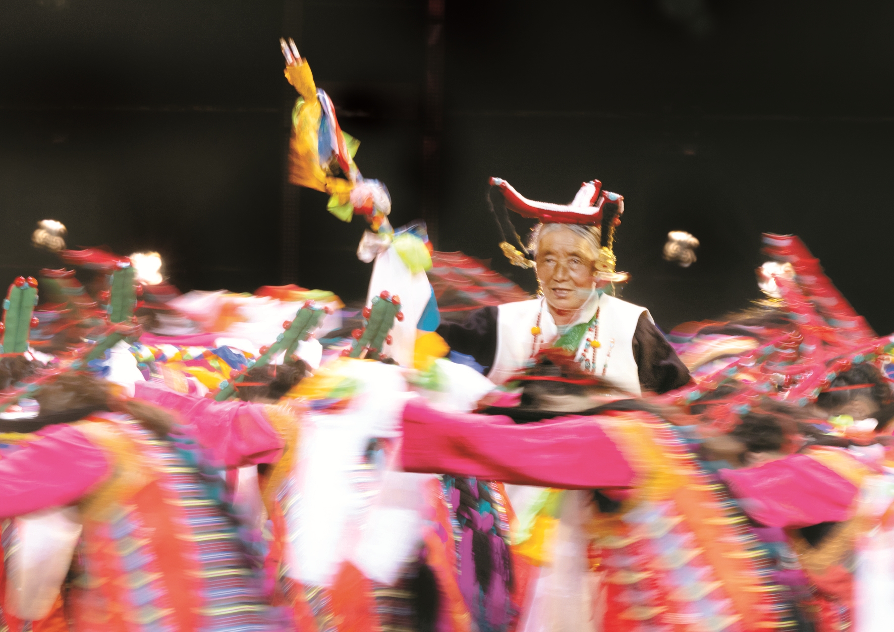 “諧欽”是西藏傳統(tǒng)歌舞節(jié)目,歷史悠久,深受廣大群眾喜愛。編導(dǎo)吳金曲珍介紹說:“這個(gè)節(jié)目是根據(jù)熱堆村的一個(gè)原生態(tài)舞種改編而成的,里面表現(xiàn)的是豐收的喜悅和對家鄉(xiāng)景色的贊美,節(jié)目中表演的34名演員包括一位老阿媽在內(nèi),都是群眾?!?/p>