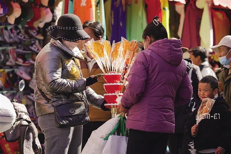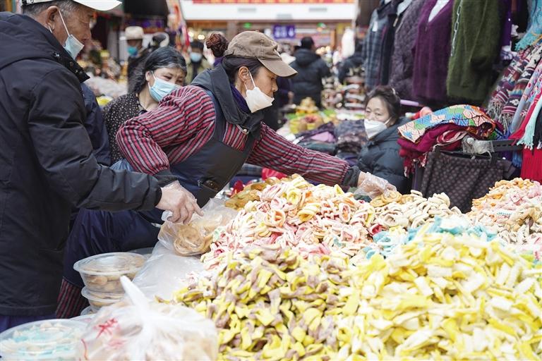 “市場(chǎng)現(xiàn)有1200多家商戶,經(jīng)營(yíng)商品有零食、蔬菜、肉類、干雜、五金、服裝等。藏歷新年臨近,每天前來(lái)置辦年貨的市民絡(luò)繹不絕,日均人流量超1萬(wàn)。為保證藏歷新年期間年貨充足,市場(chǎng)商戶們提前籌備、積極備貨,目前,各類商品庫(kù)存充足、品種豐富,基本上能夠滿足不同消費(fèi)者的需求?!睕_賽康商貿(mào)有限公司負(fù)責(zé)人尼瑪告訴記者。此外,沖賽康市場(chǎng)將于2月19日至27日暫停營(yíng)業(yè),28日起正常營(yíng)業(yè)。