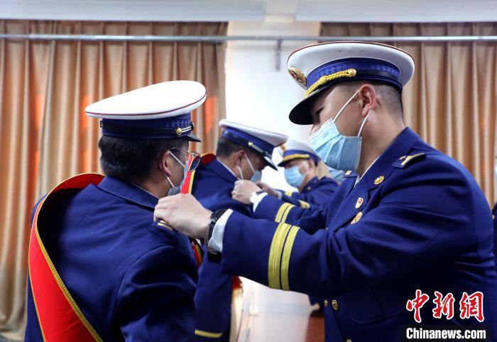 3月22日,分會場更換消防救援銜標識?!∥鞑厣窒揽傟牴﹫D