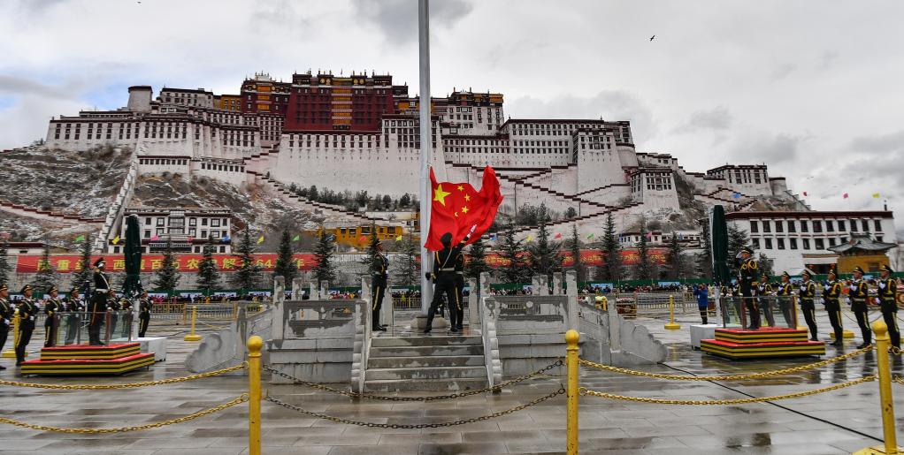 布達(dá)拉宮廣場(chǎng)舉行升旗儀式(3月28日攝)。新華社記者晉美多吉 攝
