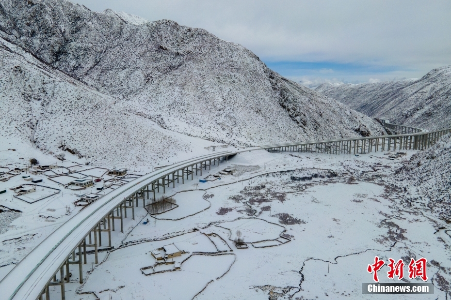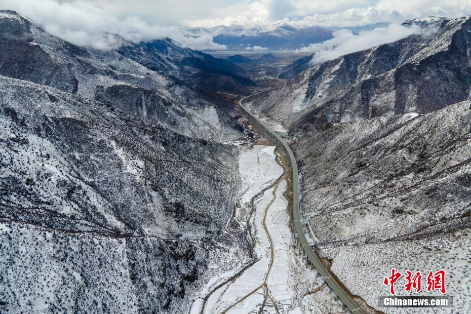 3月28日,西藏S5線拉薩至澤當(dāng)快速通道項(xiàng)目控制性工程圭嘎拉隧道左洞實(shí)現(xiàn)貫通。圖為西藏S5線拉薩至澤當(dāng)快速通道項(xiàng)目拉薩達(dá)孜段。(無(wú)人機(jī)畫(huà)面)