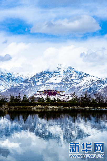 3月30日,在拉薩市南山公園拍攝的雪后布達拉宮。新華網(wǎng) 柑丹鴦琦攝