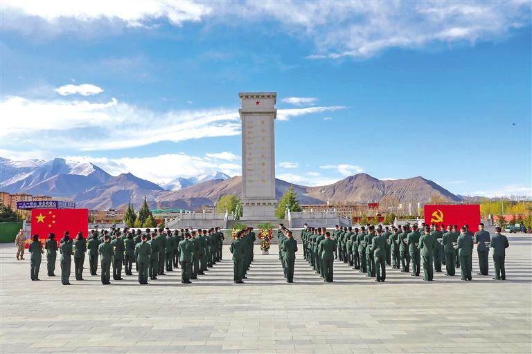 拉薩警備區(qū)某團組織官兵瞻仰烈士紀(jì)念碑。