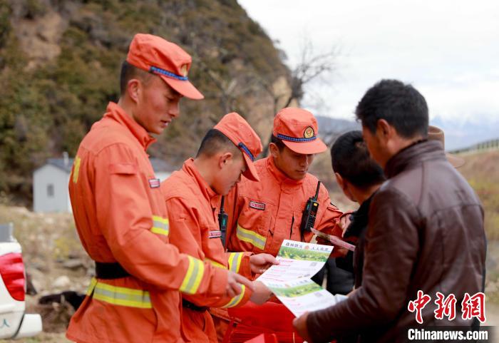 森林消防隊(duì)員在祭祀?yún)^(qū)域開展防火宣傳。 西繞拉翁 攝
