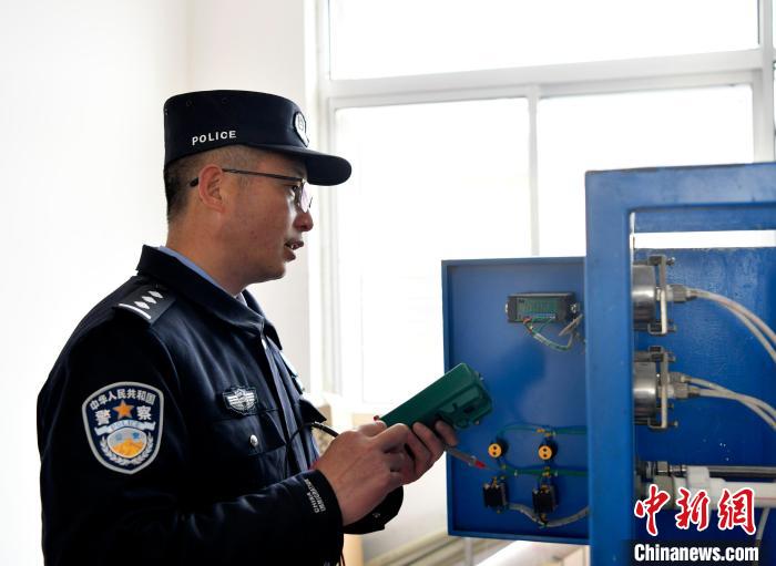 民警李加潘正在檢修保養(yǎng)自來水凈化設(shè)備?!±盍?攝