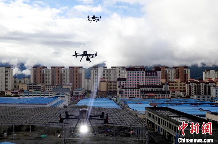 圖為演練中無(wú)人機(jī)正在進(jìn)行勘察喊話。西繞拉翁 攝